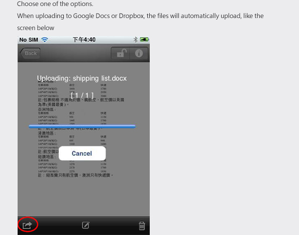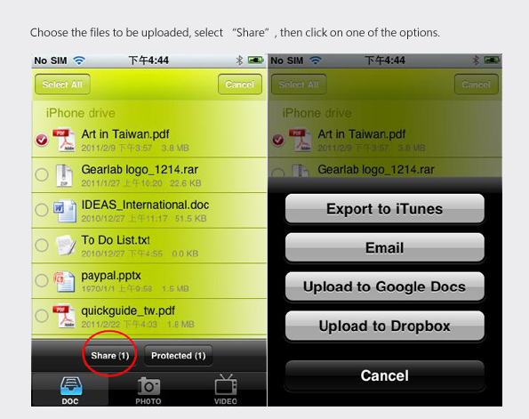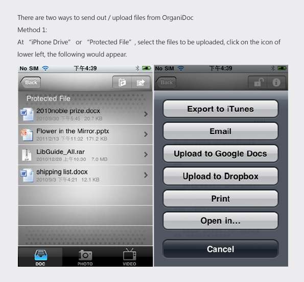 How to export files from OrganiDoc to Google Docs, Dropbox and Mailbox?